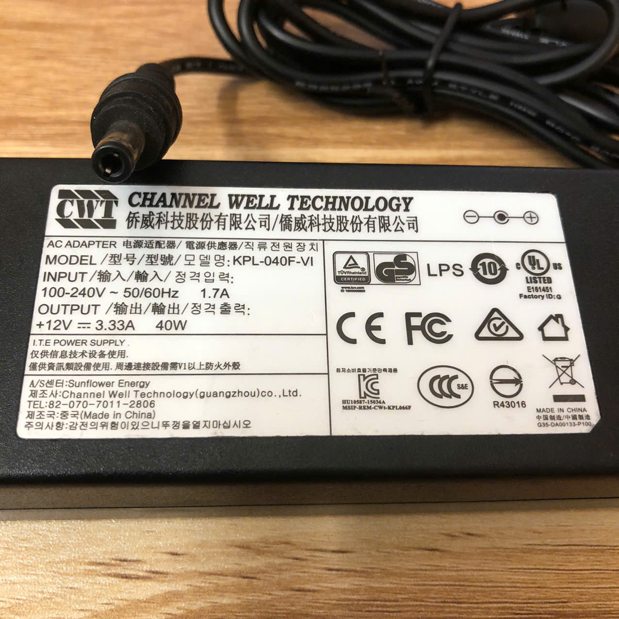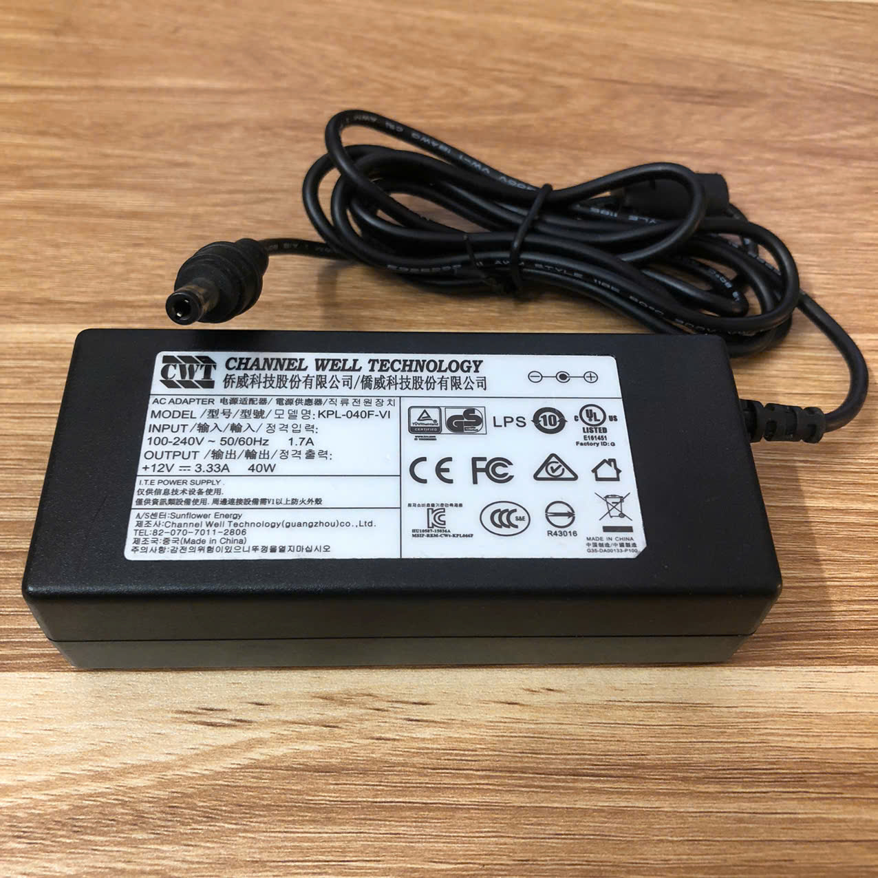 Chuyển nguồn Adapter CWT KPL-040F-VI 12V 3.33A 100-240V 50-60Hz 1.7A đầu cắm DC 5.5mm x 2.5mm